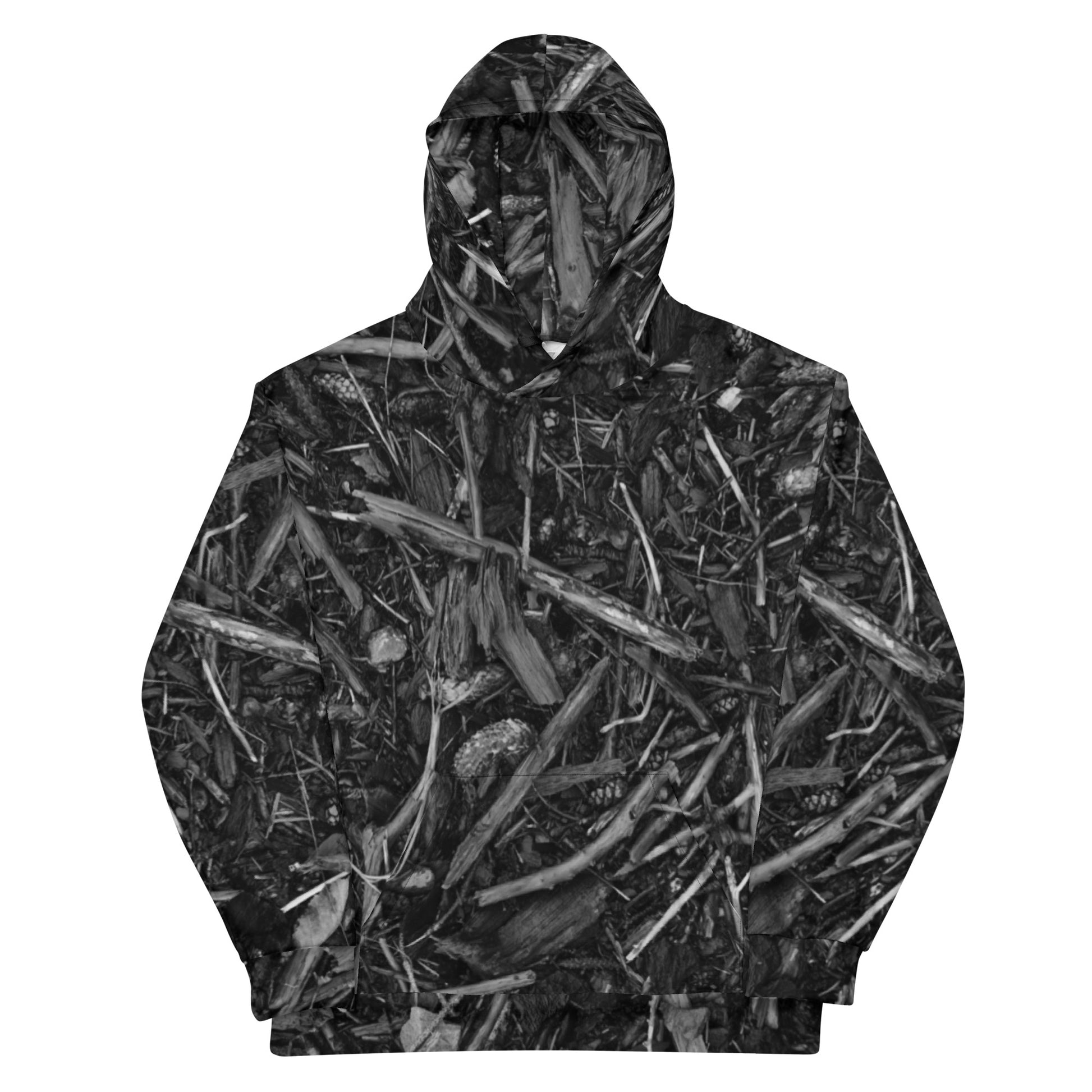 After Winter is over here in Southeastern Alaska there will always be little collected piles of debris left over from the Snowy Season. I took this photo in Black and White in the Spring of 2022. The Winter before had been especially terrible, and I felt that this photo kind of spoke to me about it. This comfy unisex hoodie has a soft outside with a vibrant print and an even softer brushed fleece inside. The hoodie has a relaxed fit, and it's perfect for wrapping yourself into on a chilly evening.